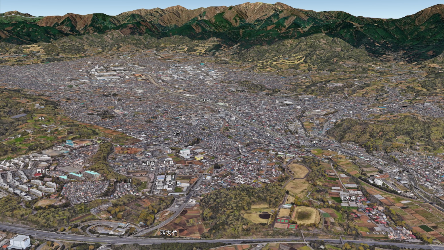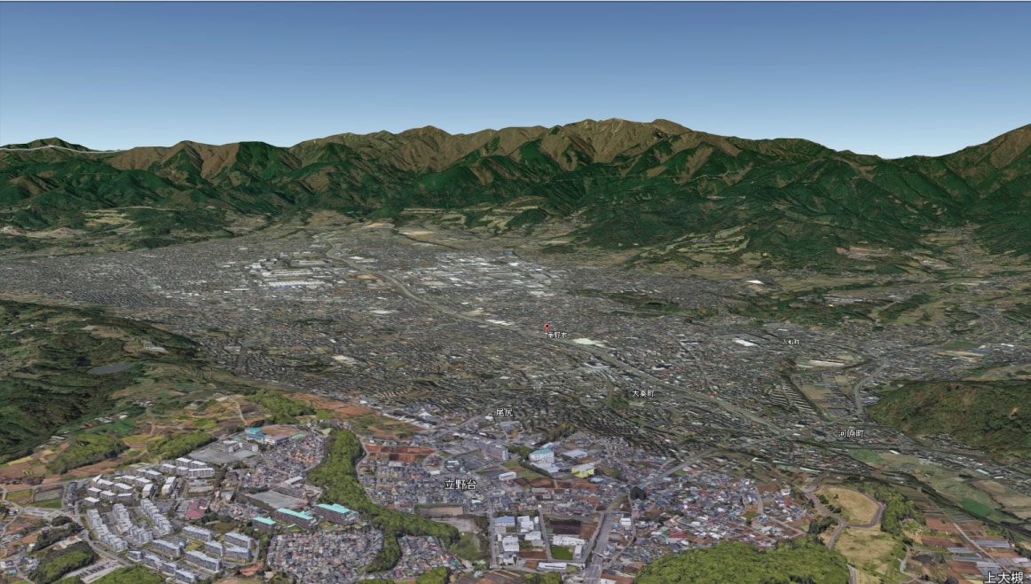 神奈川県西部にある秦野市ですがグーグルアースにおきまして3D化しておりました。