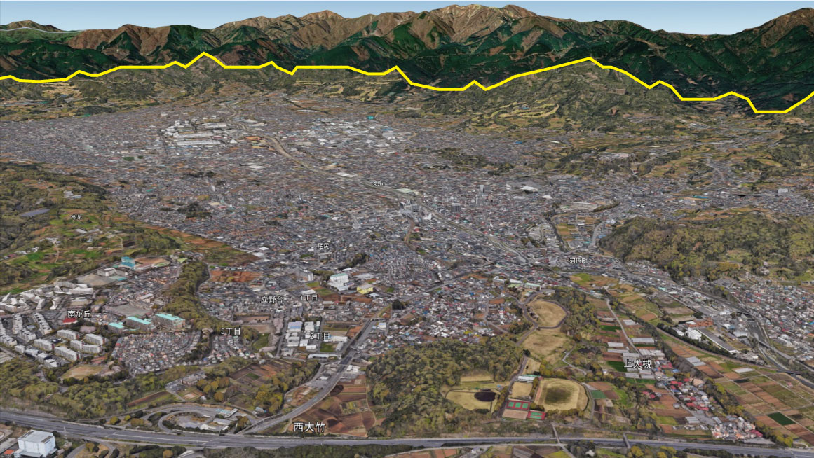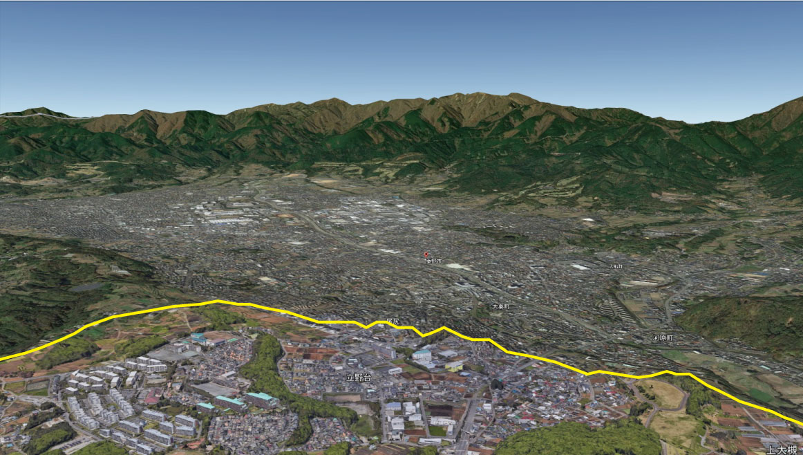 これまでは秦野市街地の南側の大磯丘陵までが3D境界の北限でしたが、現在は丹沢山地の山すそを超えています。