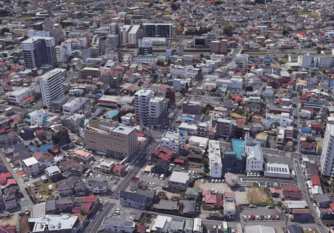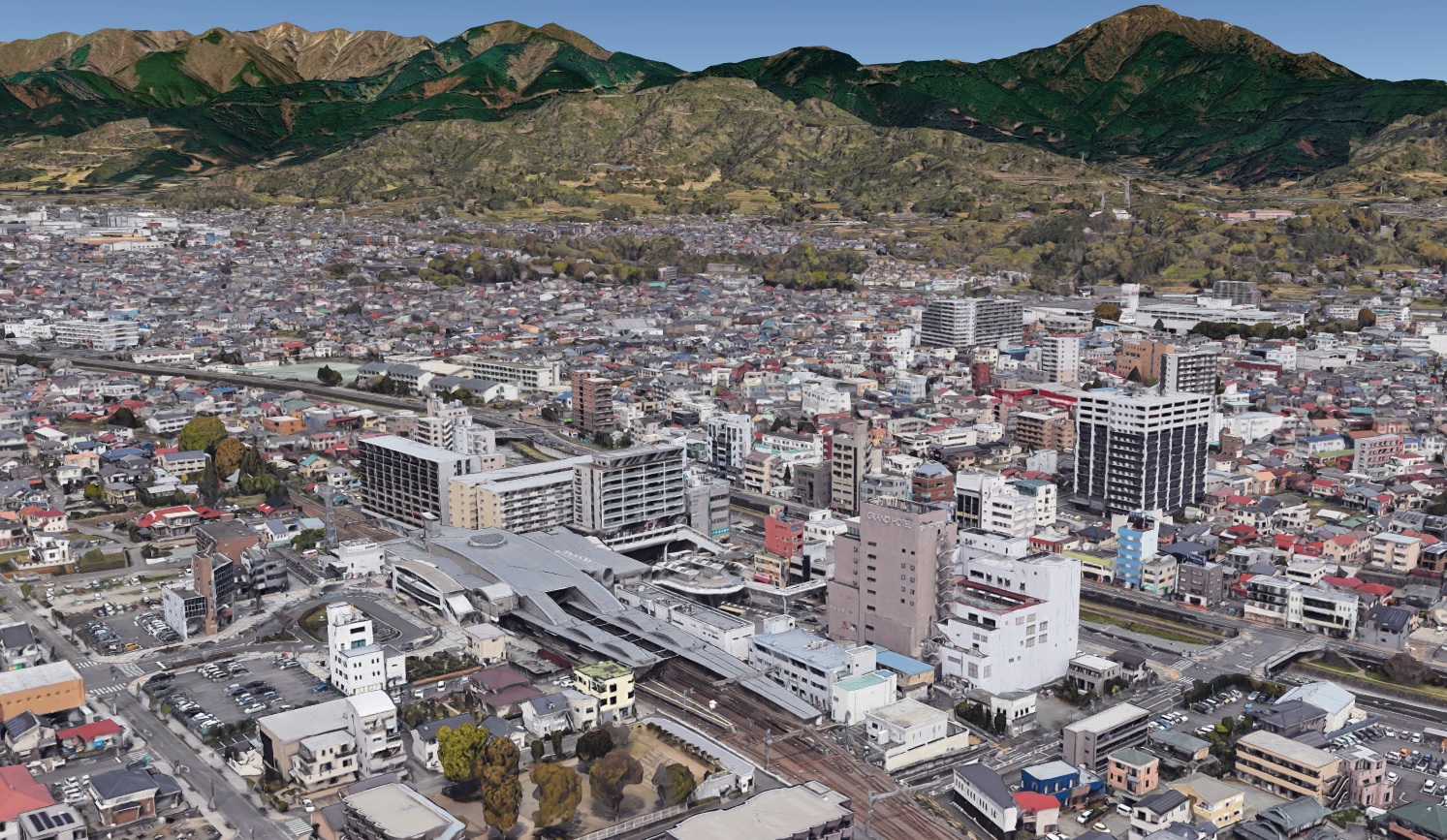 秦野市街地のグーグルアース3Dビュー