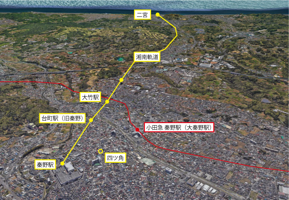 3D表示に移行した秦野市内の駅