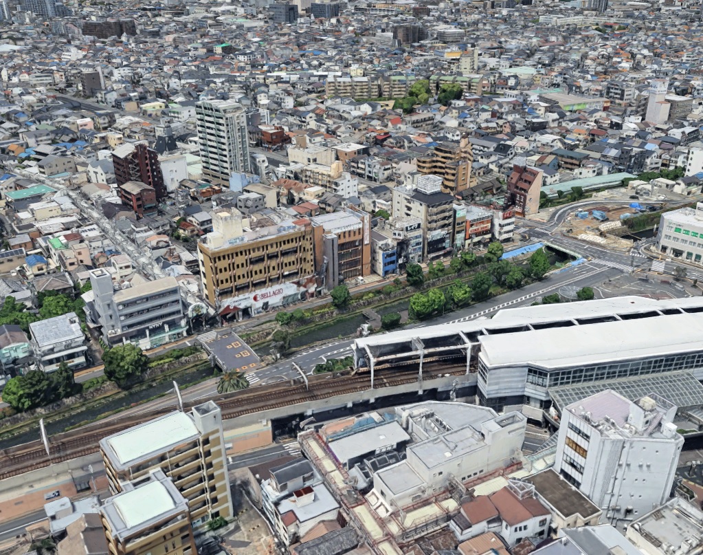 秦野駅北側の水無川に並ぶビルを見ていると京阪電鉄 寝屋川駅前(大阪府寝屋川市)を思い出します。同じように駅のすぐ北側に川があり、川端にビルが並んでいるんです。