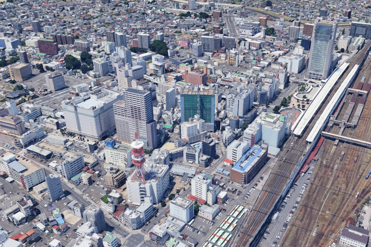 グーグルアースの郡山市更新で再開発により日の出通りがスッキリしてきたことがわかります。