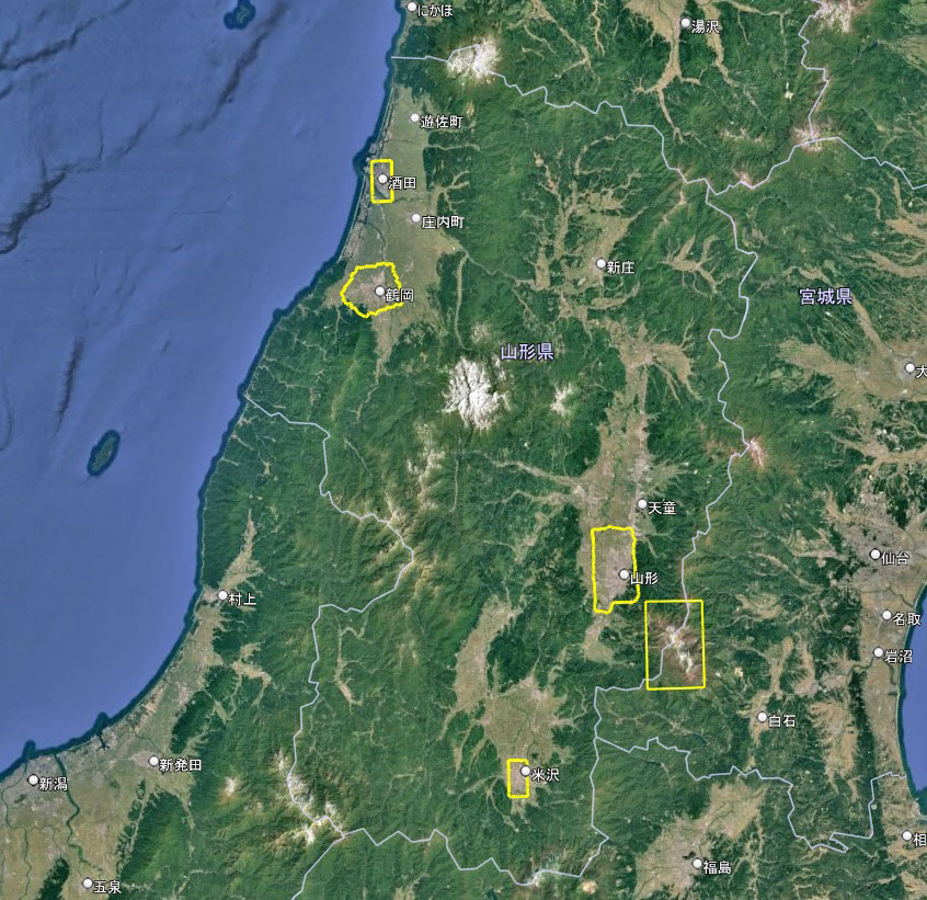 【最新版】Google Earth で見る山形県 3D/2D表示の現状を平成の大合併以前の全市町村ベースで徹底調査