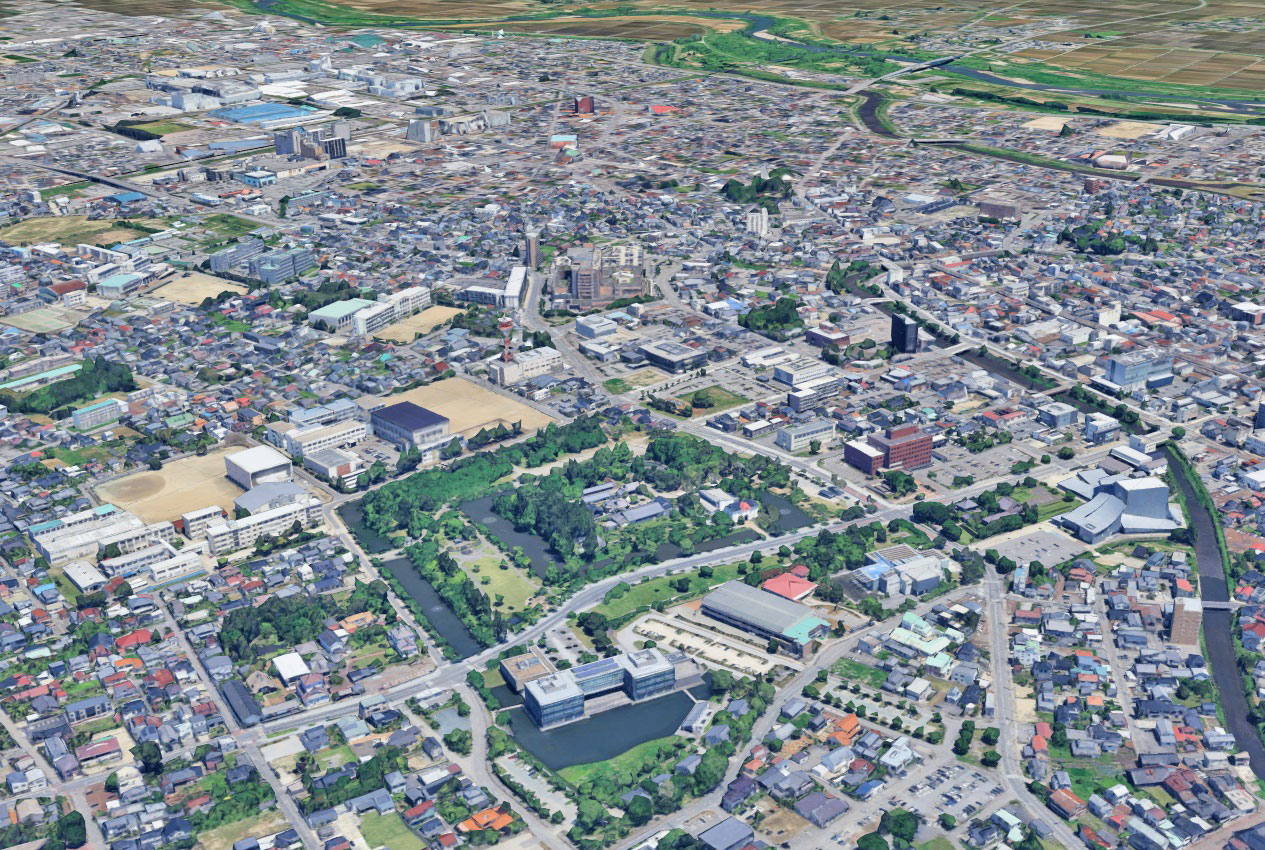 山形県内におけるGoogle Earthの3Dマッピング対応都市を全市町村(平成の大合併以前)で確認した結果、表示都市は「山形市」「米沢市」「酒田市」「鶴岡市」の4市でした。